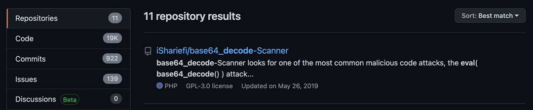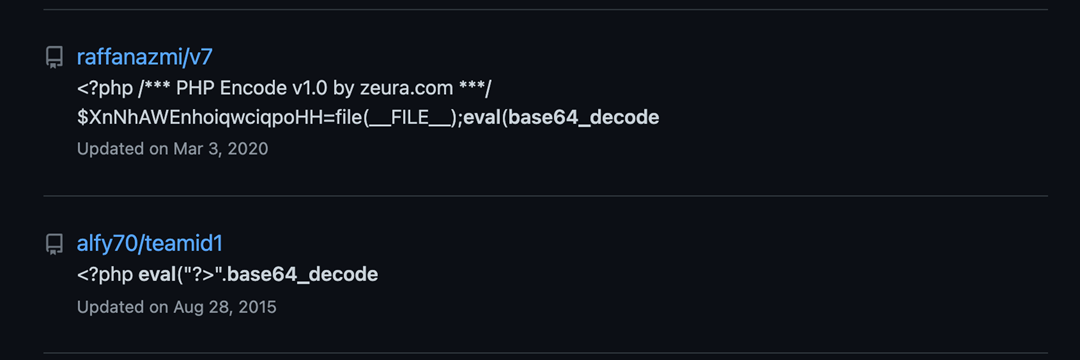 A quick investigation found these repositories either didn’t have any files in them or only had “expected” repository files such as Markdown files, LICENSE, files, and / or Git files. So where was the PHP code?
