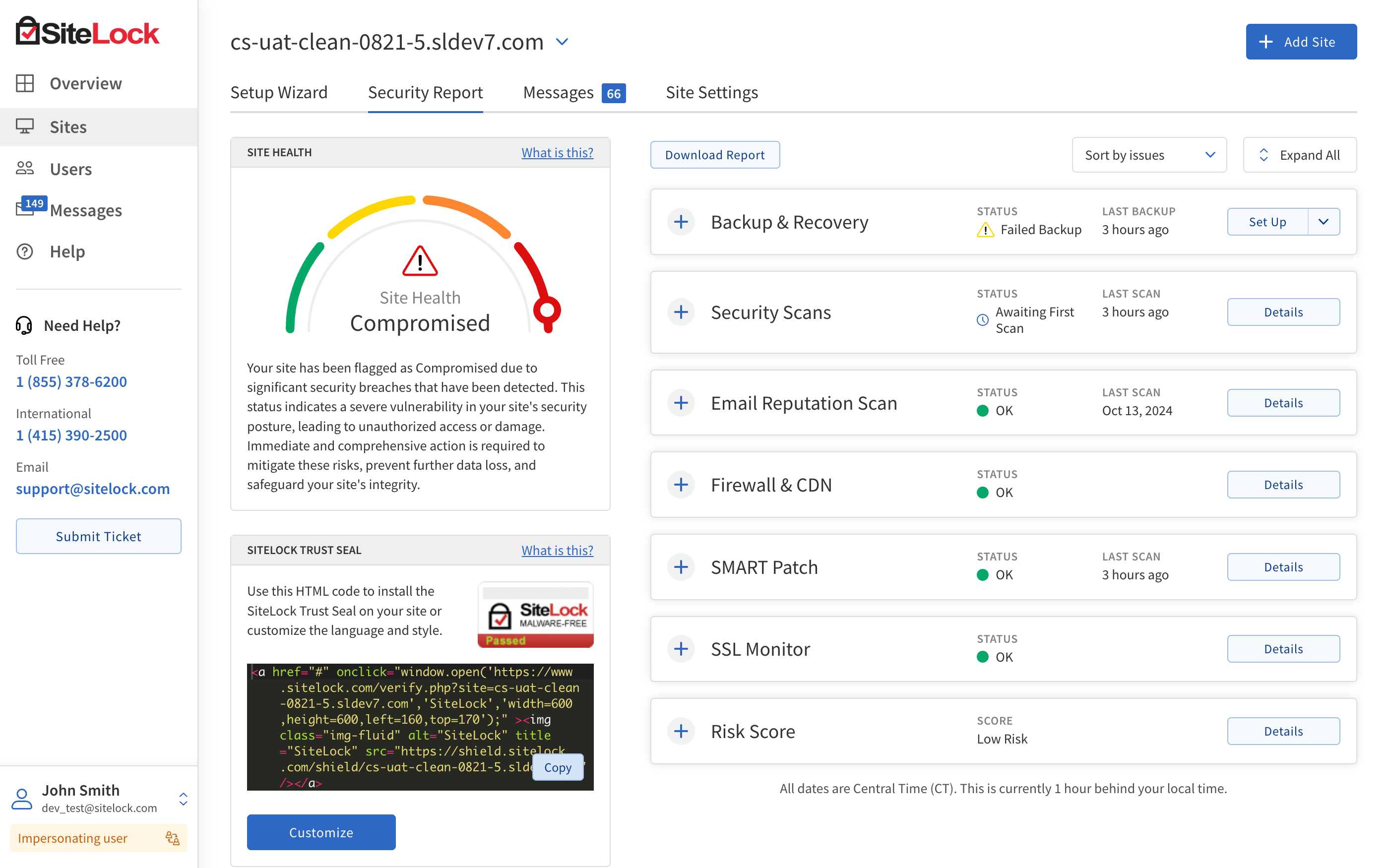 Stay up to date about the performance of your site with real-time results from your SiteLock Dashboard.
