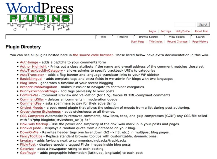 The first WordPress plugin directory was born in late 2005 and looked like this: