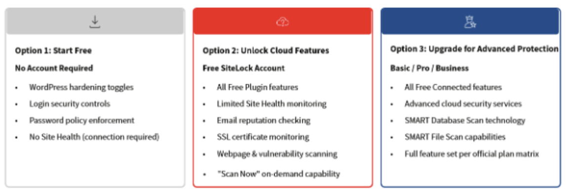SiteLock’s all-new WordPress security plugin focuses on scanning, hardening, and login protection in a single tool. It's free to use (with paid options available), user-friendly, and designed to improve security while minimizing setup and ongoing maintenance.