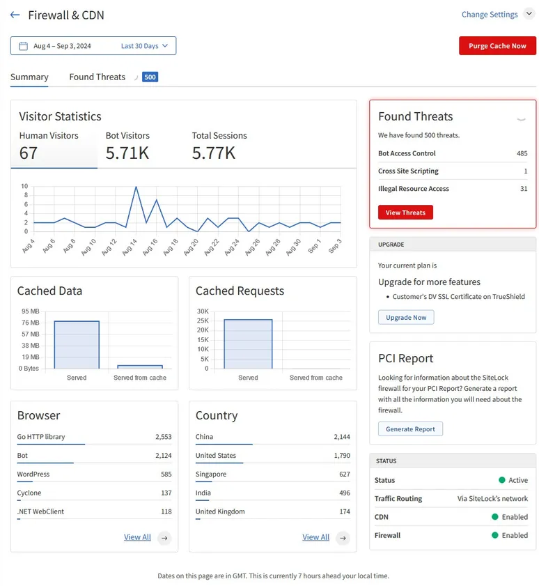 In addition to all the built-in security that SiteLock pre-configures, a firewall allows you full control over who is allowed to access your website. For example, if you live in the United States and operate a local bakery website, you can block entire countries from accessing your website. If your website is intended for local visitors, it's a great idea to lock down your website so that visitors from other countries are blocked automatically. This doesn't hurt your business, because you do not have international customers, but it does keep international attackers away from your website!
