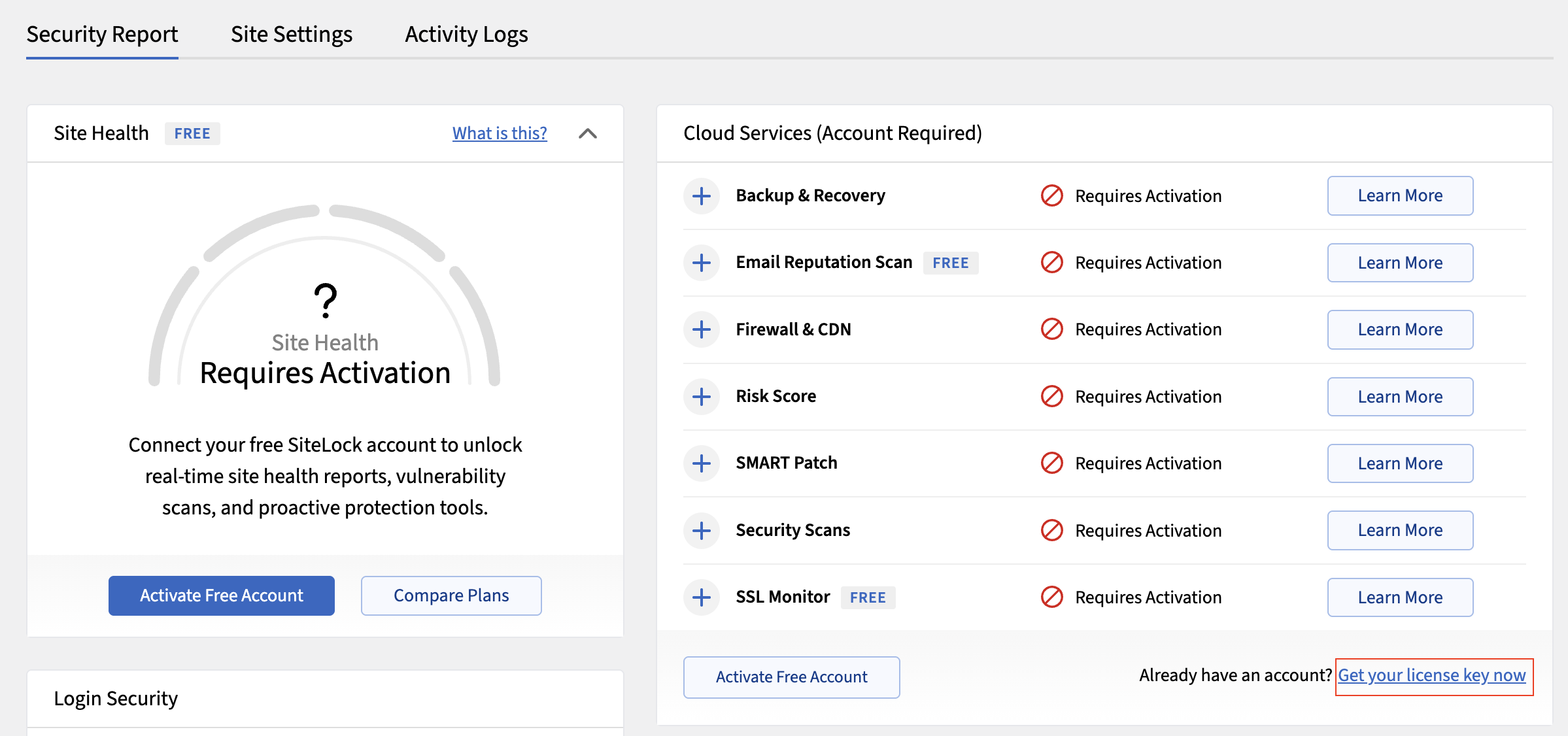 Activate Free Account - The button activates your free SiteLock account and starts protecting your site.